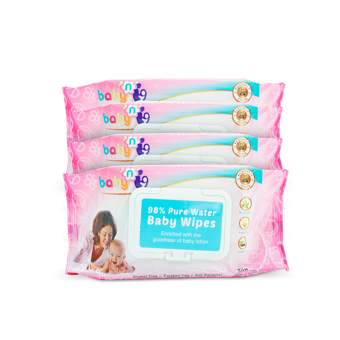 98% Pure Water Baby Wipes - Pack of 4