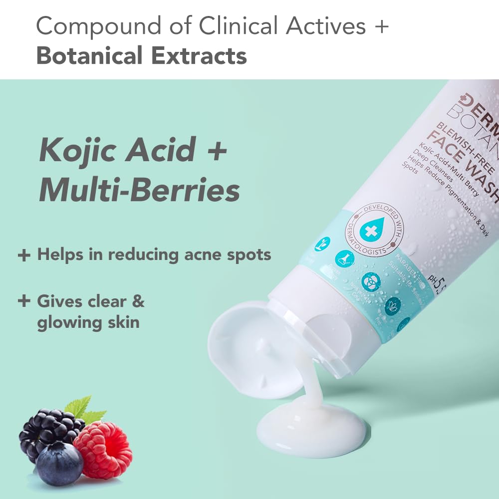 Lotus DermaBotanics Kojic Acid + Multi Berry Blemish - Free Face Wash | Reduces Pigmentation, Acne & Dark Spots | Made with Dermatologists, pH 5.5 | Non-irritating | Suitable for Sensitive Skin | 100g