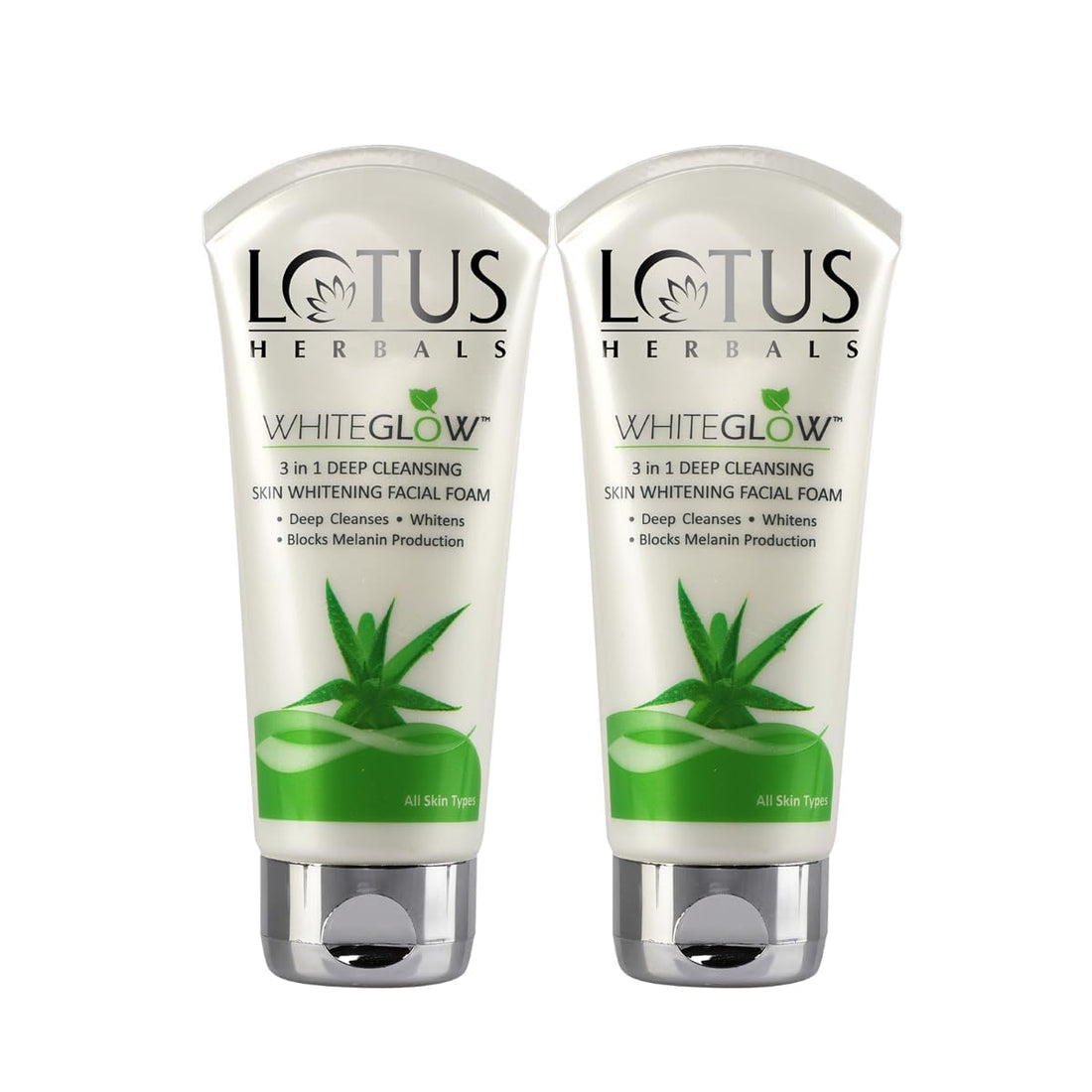 - DEEPLY CLEANSES SKIN: Lotus Herbals White Glow 3 in 1 Deep Cleansing Skin Whitening Facial Foam easily penetrates deep into pores to remove excess oil without interfering with your skin's natural moisture barrier. The face wash is mild but powerful thanks to its foamy nature.