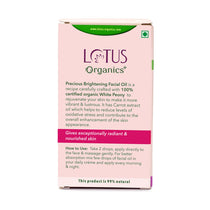 Lotus Organics+ Precious Brightening Face Oil | 100% Certified Organic White Peony | Reverses Sun-damage & Calms Irritated Skin | Sulphate & Paraben Free | All Skin Types | 15ml