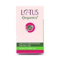 Details: Lotus Organics+ Precious Brightening Facial Oil is prepared by blending fresh 100% Certified Organic White Peony extracts with Soybean Oil, Sweet Almond Oil, Palm Oil, and Olive Oil.This organic lightweight concoction delivers unrivalled smoothness and dazzling radiance and prevents waterthus maintaining the skin’s hydration levels.